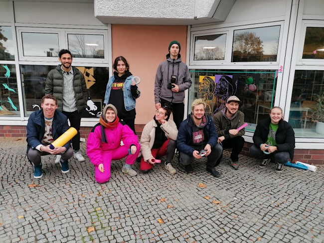Um die Kunstaktion an der Ehm-Welk-Bibliothek zu finanzieren, kam das QM Alter Hellersdorfer Straße für die benötigten Materialen auf: Klebefolien, Trägerpapiere und Fensterreiniger. Auf diese Weise entstanden nicht nur bemerkenswerte Kunstwerke. Gleichzeitig haben die jungen Künstlerinnen und Künstler aus Marzahn-Hellersdorf eine Förderung erhalten.