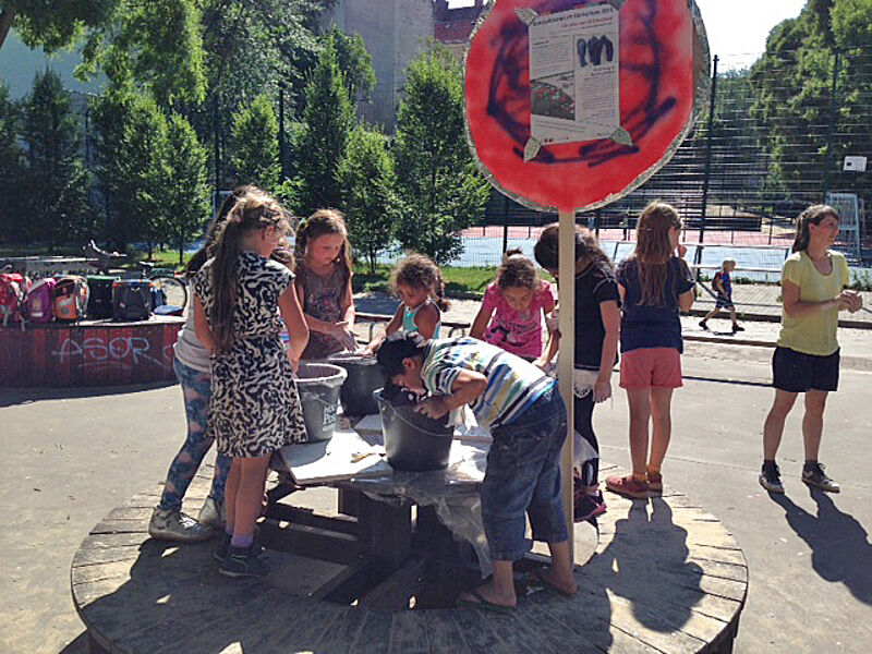Künstlerin Kristina Berning hatte sich die Aktion ausgedacht: Die Kinder formten Gips-Skulpturen in Ton vor und färbten sie anschließend farbig und phantasievoll ein. Veranstaltet wurde die Mitmach-Aktion vom WerkStadt Kulturverein Berlin e.V. und war die erste von zwei Kunstaktionen zum Mitmachen. Als zweite Kunstaktion hatte Künstler Nikolaus Schrot am 12. Juli zu Zeichnungen in Raum und Zeit geladen.