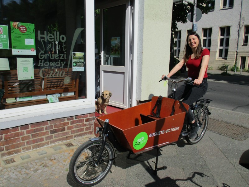 Das Auguste-Victoria-Lastenfahrrad kann momentan dienstags und donnerstags zwischen 10 und 13 Uhr abgeholt und zurückgegeben werden. Drei Tage lang kann es von den Bewohnerinnen und Bewohnern im Kiez genutzt werden.