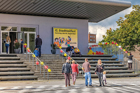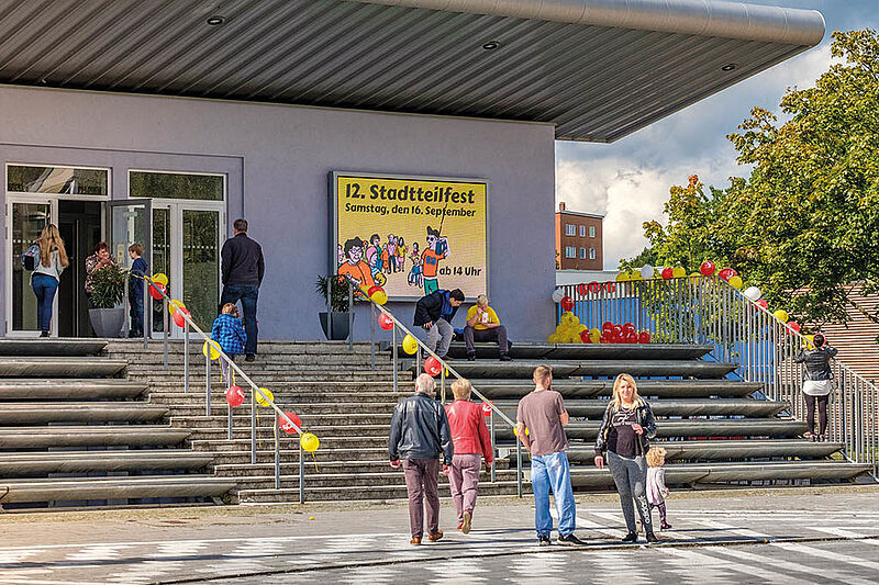Wer wissen will, was im Quartier los ist, der informiert sich meistens über das Internet, die Kiezzeitung oder per Mail über Neuigkeiten und Veranstaltungen vor Ort. Im Quartiersmanagementgebiet Falkenhagener Feld Ost gibt es mit einer 5,5 Quadratmeter großen LED-Wand eine weitere Informationsquelle. Blitzschnell können hier Informationen geteilt werden. Besonders beliebt sind Fotoshows von Veranstaltungen.