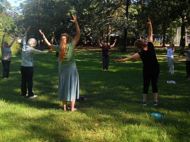 Ganz ohne Geräte oder Vereinsmitgliedschaft – mit niedrigschwelligen Angeboten bekommen die Anwohnenden die Möglichkeit zum gemeinsamen Sporttreiben. (Bild: bwgt e.V.)