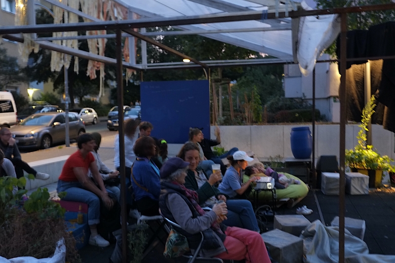 An dem lauen Spätsommerabend kamen etwas mehr als 30 Besuchende, um den im Quartier entstandenen Dokumentarfilm „Ich KRIEG die Krise“ anzusehen. Hervorgegangen ist er aus einem Projekt, das die Grundschullehrerin Nora Barbiche im Rahmen des talentCampus der Volkshochschule Neukölln gemeinsam mit dem Kiezanker e. V. mit Kindern aus dem Rollberg durchgeführt hat.