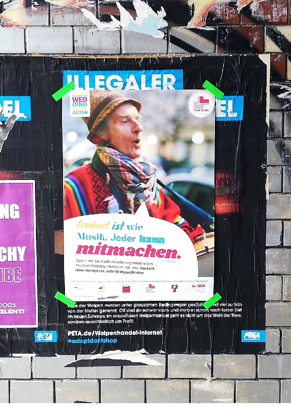 Die Posteraktion ist ein Teil eines Projekts, das noch bis Herbst 2021 läuft. Ein weiterer Baustein ist das Festival „Der Wedding musiziert", das für den 10. und 11. September 2021 auf dem Nettelbeckplatz geplant ist. Weitere Informationen gibt es auf der Webseite des Weddingorchesters.