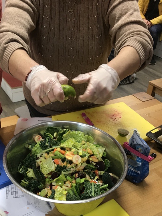 Dem grauen Wetter mit knallig bunten Speisen trotzen: Im Quartiersmanagement-(QM)-Gebiet Beusselstraße veranstalteten die Vereine RESTLOS GLÜCKLICH und Moabiter Ratschlag am 25. Januar 2023 einen köstlichen „Kiez Kochen”-Workshop.