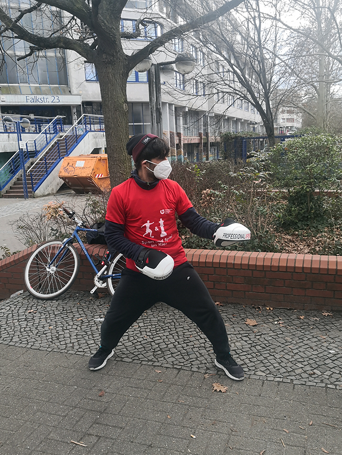 Seit Anfang Oktober versammelt Ali Kantouri regelmäßig auf dem Falkplatz im Flughafenkiez Kinder und Jugendliche, um mit ihnen zu spielen und Sport zu treiben. Er ist Sportfachmann aus dem Stadtteil-Gesundheits-Zentrum Neukölln und bietet eine große Bandbreite sportlicher Aktivitäten an: von Fußball über Kampfsport bis hin zu bewegungs- und koordinationsfördernden Spielen für jede Altersgruppe. Was gemacht wird, entscheiden stets die Kinder und Jugendlichen vor Ort. Sie müssen nur kommen und mitmachen: keine Anmeldung, keine Platzvergabe, keine Wartelisten.