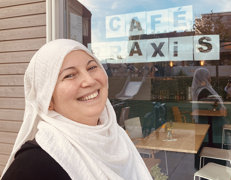 Begleitet wird Ali von seiner Kollegin Fatma Adigüzel. Fatma war viele Jahre als Stadtteilmutter im Rollberg unterwegs, kennt alle Angebote und Einrichtungen vor Ort und ist gut vernetzt. Jetzt arbeitet sie im Stadtteil-Gesundheits-Zentrum Neukölln als Multiplikatorin. Dort verbreitet sie die Ankündigungen der Veranstaltungen und Angebote in ihren Netzwerken und spricht verschiedene Menschen im Kiez sowie Nutzende an.
