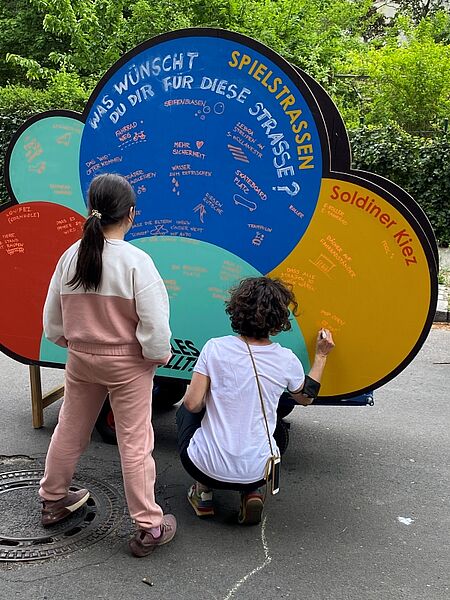 Der Grundgedanke der Spielstraßen ist es, mehr Aufenthaltsqualität im Kiez zu schaffen – durch Eigeninitiative der Nachbarinnen und Nachbarn. Aktuell nehmen die Bewohnenden des Soldiner Kiezes das hohe Verkehrsaufkommen als starke Belastung wahr. Die temporären Spielstraßen sorgen für einen Ausgleich und sensibilisieren gleichzeitig für eine nachhaltige und individuelle Mobilität.