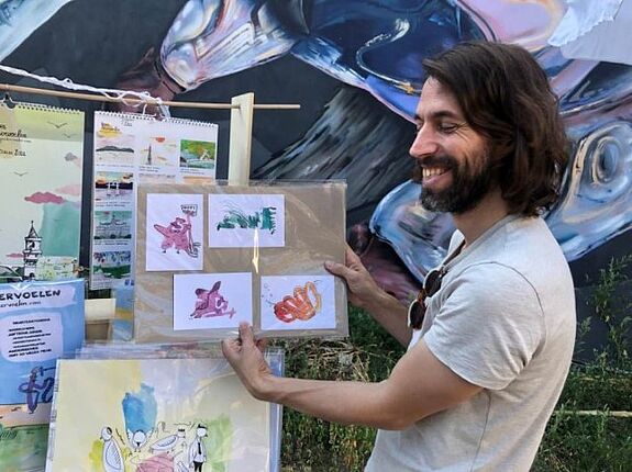 Bei einer „Kritzel-mit“-Aktion wurde der Kreativität freien Lauf gelassen. Auf dem Spielplatz gegenüber des QM-Büros führte der professionelle Illustrator, Künstler und Anwohner der Dresdener Straße, Yves Cervoleon, eine außergewöhnliche Zeichenaktion durch: Auf Druckvorlagen mit Buchstaben-Motiven aus dem japanischen Alphabet wurden persönliche Kunstwerke zum Mitnehmen geschaffen.