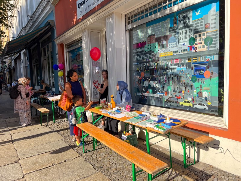 Mit dabei war das Projekt „SofiA“ vom Träger Die Wille gGmbH, dessen Angebote sich an Menschen über 65 Jahre richtet. Bei den Projekten „Umweltcheck am Kotti“, durchgeführt von der Yeşil Çember gGmbH , und „Waste Influencer“, umgesetzt vom Kulturlabor Trial & Error e.V., stehen Umwelt und Sauberkeit im Quartier im Fokus. Mit ihren Aktionen trugen die Projektteams zu einem abwechslungsreichen Quartierstag bei.