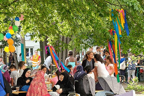 Nettes Beisammensein auf dem Nachbarschaftsfest. Bild: QM Falkenhagener Feld West