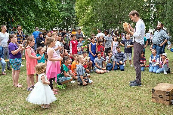 Der Zauberer verblüffte die Kleinen mit seinen Kunststücken. Bild: QM Falkenhagener Feld West