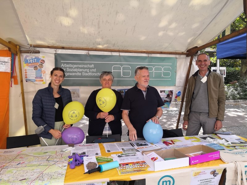 Das QM Nahariyastraße nutzte die Chance, um sich am Stand der AG SPAS e.V. gemeinsam mit anderen Quartiersverfahren im Bezirk zu präsentieren. Viele interessante Gespräche kamen zustande. So konnten bestehende Kontakte vertieft und neue geknüpft werden. Das Interesse am Austausch war bei allen sehr groß und es gab viele Anregungen für die konkrete Arbeit im Quartier Nahariyastraße.