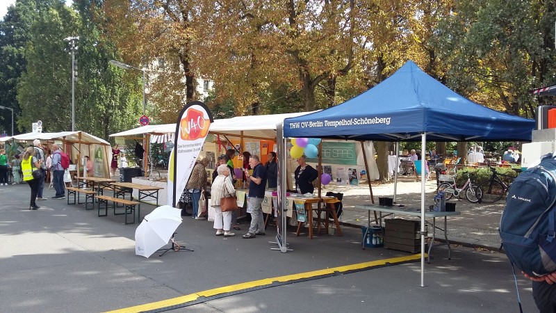 Bei schönstem Sommerwetter hatten sich zwischen 12 und 19 Uhr zahlreiche ehrenamtliche Träger, Organisationen, Einrichtungen, Projekte und viele Abteilungen des Bezirksamtes Tempelhof-Schöneberg an 80 Ständen versammelt, um die Menschen über das breite Angebote im Bezirk zu informieren. Ein Begleitprogramm auf großer Bühne und viele Stände mit internationalem Essen und Getränken gehörten dazu.