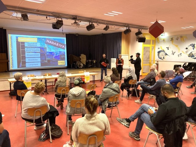 Am 5. Oktober 2023 versammelte sich die Nachbarschaft bereits zum fünften Mal im Gemeinschaftsraum der Nahariya-Schule. Unter der Leitung von Eva Majewski, Bezirksstadträtin für Stadtentwicklung und Facility Management, bot das 5. Nahariyaforum ein vielfältiges Programm und eine besondere Überraschung: Das Quartiersmanagement plant, die Ereignisse in den kommenden Jahren filmisch festzuhalten und im Jahr 2025 als Kurzfilm zu veröffentlichen.