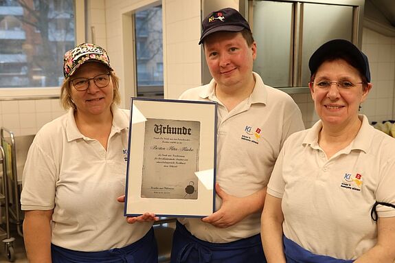 Die Eltern der Kita-Kinder danken dem Küchen-Team mit einer Urkunde: „Beste Kita-Köche“. (Bild: QM Pankstraße)