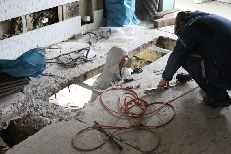 Bauleiter Walfried Haas und sein Team modernisierten die Ausstattung der Küche. In dem 1974 erbauten Gebäude haperte es an vielen Ecken. Eine neue Lüftung musste her, um Zugluft und Abfuhr von Feuchtigkeit zu regeln. Der geflieste Boden entsprach nicht dem Arbeitsschutz und musste erneuert werden. Viele Kolleginnen und Kollegen klagten über Rückenprobleme, da im Wirtschaftsbereich hebeunfreundliche Vorrichtungen existierten.