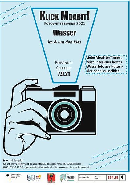 Das Quartiersmanagement (QM) Beusselstraße sucht 2021 Bilder zum Thema Wasser. Gesucht sind die 13 schönsten Fotos unter dem Motto „Klick Moabit! Wasser im & um den Kiez“. Das Gebiet der Beusselstraße konzentriert sich seit 2021 auf den Beussel- und Huttenkiez, die auch im Fokus des Fotowettbewerbs liegen. Die Gewinnerinnen und Gewinner erhalten tolle Preise und bilden dann den Wandkalender 2022, der im Quartier kostenlos verteilt wird. Also auf geht’s, das Wasser entdecken und mit der eigenen Kamera festhalten. Einsendeschluss ist der 07. September 2021, wie das Ganze funktioniert erfahren Sie hier.