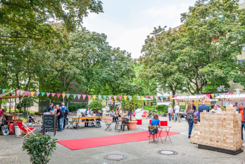 Die festliche Dekoration und zahlreiche Stände lockten viele Anwohnende zum Nachbarschaftsfest. (Bild: www.salecker.info)