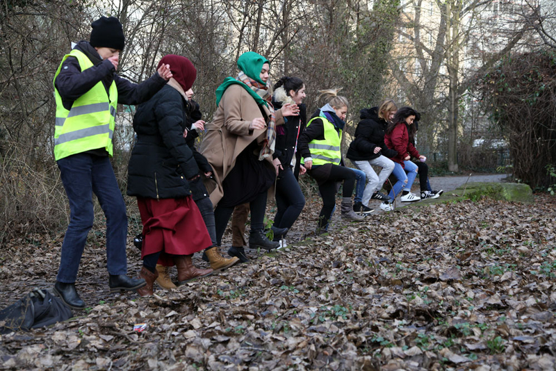 Der Baufachfrau Berlin e.V. hatte den Fluss Panke bereits in der Vergangenheit als sportlichen Erlebnisraum erschlossen. Nach der Installation eines festen Parcours im Pankeabschnitt zwischen Gericht- und Pankstraße folgte nun der zweite Bauabschnitt. Verschiedene Gruppen wurden zu einem Probedurchgang eingeladen. Darunter auch die Klasse 8d der Herbert-Hoover-Schule, die den Parcours im Rahmen des Sportunterrichtes kennenlernte.
