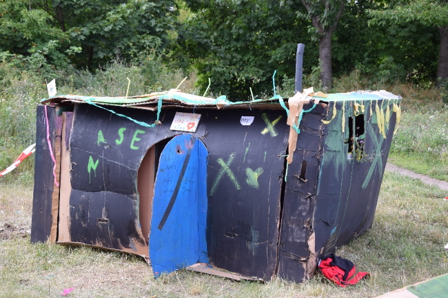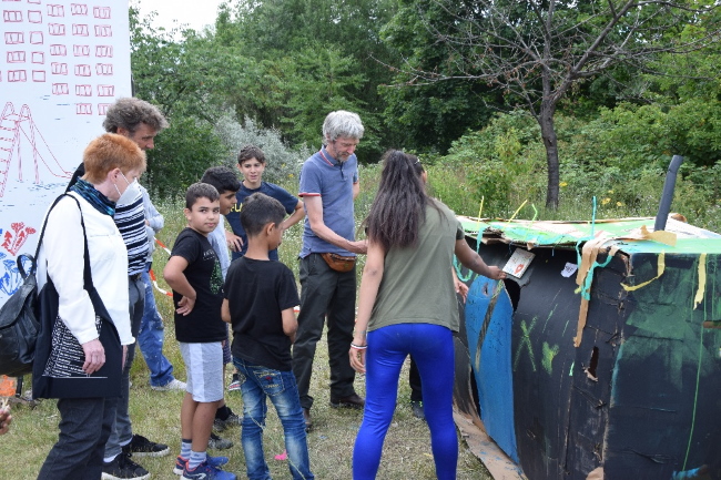 Drei Tage hatten die Kinder Zeit, ihre eigene Stadt der Zukunft zu entwerfen. Aus Karton und viel Farbe entstanden dabei kreative Bauwerke. Am 11. Juli 2020 bestaunten die Besucherinnen und Besucher neben einem Schwimmbad und einem Laden, unter anderem ein pinkes Schloss. Leider mussten die Bauwerke nach Beendigung des Workshops abgerissen werden , aber eines wollten die Kinder unbedingt erhalten: Das „Ausländerhaus mit Herz“, das mehreren Kindern Platz bietet und sich zudem gut für gemeinsame Spiele eignet.