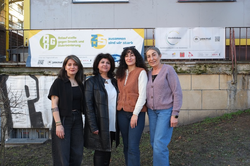Drei Mitglieder des Vereins Yekmal e. V., der Neuköllner Anlaufstelle gegen Diskriminierung, sprechen in den neuen Angeboten mit Menschen aus dem Kiez über ihre diskriminierenden Erlebnisse im Alltag, in der Schule, im Beruf oder beim Kontakt mit Behörden.