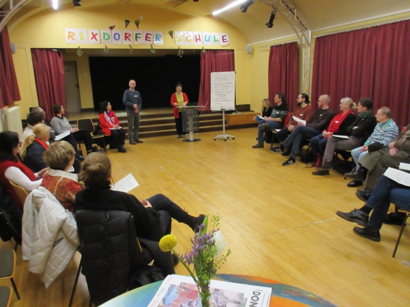 Zahlreiche Teilnehmende aus Verwaltung, Politik und der Gemeinschaft besuchten die beiden Veranstaltungen. Während in der Reginhard-Grundschule der traditionelle Neujahrsempfang des QMs Lettekiez mit Lob für das ehrenamtliche Engagement und einem Ausblick auf kommende Projekte gefeiert wurde, startete der Quartiersrat des Donaukiezes in der Aula der Rixdorfer Schule ein bedeutendes Projekt zur Gewaltprävention.