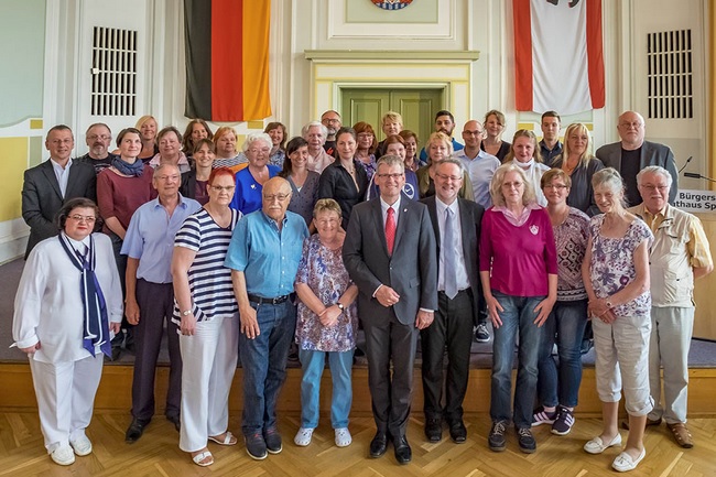 Es ist nicht mehr lang bis zu den nächsten Quartiersratswahlen - Ein guter Grund für die Ehrung der Quartiersräte und der Aktionsfondsjury in Spandau. Nach der Ehrung fanden sich alle Beteiligten zu einem Gruppenbild zusammen. Die Quartiersräte und die Aktionsfondsjury ließen sich mit dem Quartiersmanagement, Bezirksbürgermeister Helmut Kleebank und Bezirksstadtrat Carsten Röding ablichten.