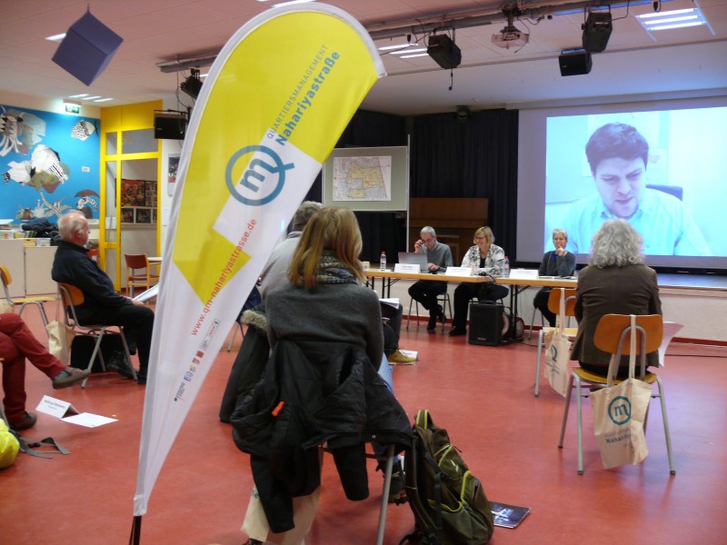 Die Veranstaltung fand aufgrund der Corona-Pandemie als Hybridmodell in der Nahariya-Schule statt. Interessierte konnten sich dadurch auch digital an der Sitzung beteiligen. Insgesamt nahmen 13 Teilnehmerinnen und Teilnehmer unter Einhaltung der Hygiene-Regeln vor Ort teil, sieben wurden digital dazugeschaltet. Für die reibungslose technische Unterstützung sorgte das QM-Team in Zusammenarbeit mit der Nahariya-Schule. Mit Beiträgen, Präsentationen und einer großen Vorstellungsrunde lernten sich die Teilnehmenden kennen und erfuhren viel Wissenswertes über die Arbeit von Quartiersräten.