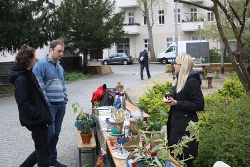 Welche Kräuter sind besonders insektenfreundlich und schmecken noch dazu gut? Gemeinsam mit Aktiven der Mobilen Stadtteilarbeit und des Moabiter Ratschlag e.V. stellte der RESTLOS GLÜCKLICH e.V. im April eine Pflanzaktion im Gebiet des QMs Beusselstraße auf die Beine. Zusätzlich gab es einen Stand, an dem Interessierte Saatgut und Pflanzen tauschen konnten sowie die Möglichkeit hatten, sich über Kräuter zu informieren. Außerdem konnten sie ein eigenes Kräutersalz mit einem Mörser herstellen.
