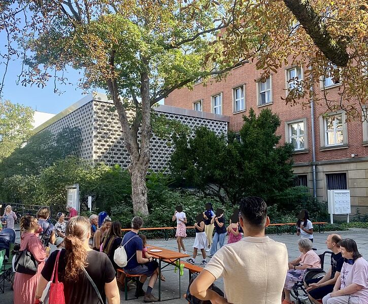 Beim Perlenkiezfest auf dem Hof des Gesundheits- und Sozialzentrums (GSZM) waren etliche lokale Aktive aus Moabit vertreten. Sie informierten, unterhielten und umsorgten die Besuchenden mit einem bunten, abwechslungsreichen Programm.