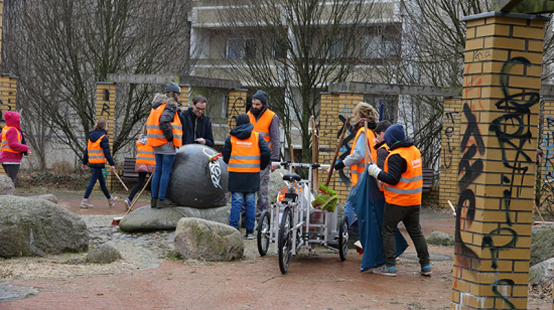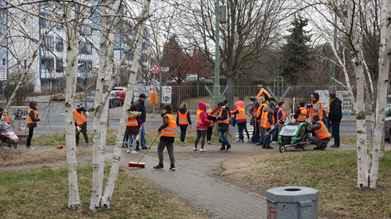 Die Putzaktion fand im Rahmen des Projekts „Freiraum gestalten“ des Quartiersmanagements im Kosmosviertel statt. Mit dem Projekt werden die Bewohnerinnen und Bewohner für den öffentlichen Raum sensibilisiert. Die Nachbarschaft soll dabei selbst aktiv werden und Ideen und Anregungen zur Verschönerung der Grünflächen einreichen.