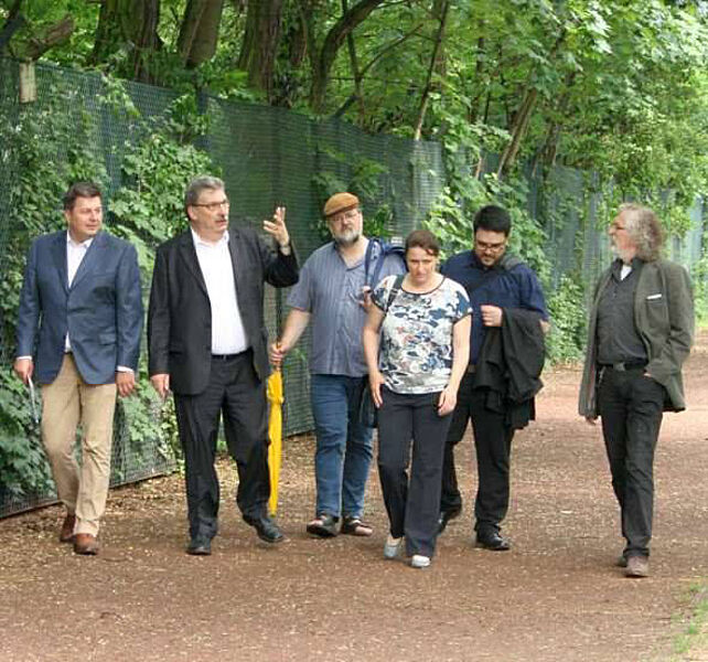 Während des Rundgangs im Soldiner Kiez am ehemaligen Bürgergarten, kurz vor dem Pankebecken. Foto: Andrei Schnell