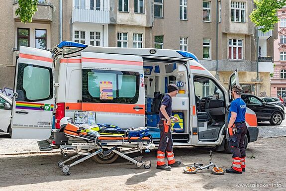 Für Interessierte stand der Rettungswagen vom Sanitätskollektiv Berlin offen. (Bild: Ralf Salecker)