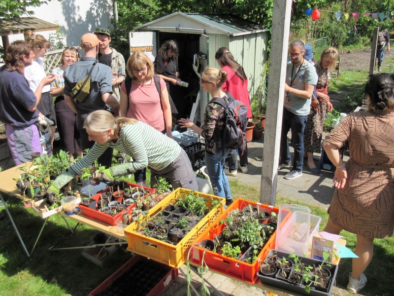 Der Rundgang führte dann zur Global Music Academy (GMA), die vor zwei Jahren Räume im ehemaligen Pumpwerk im Hof der Wildenbruchstraße 80 bezogen hat. Die GMA organisiert in diesem und im nächsten Jahr Kiezfeste für das Quartier. Das große Kiezfest steigt übrigens am 8. September 2023. Anschließend wurde noch der Gemeinschaftsgarten, der im Rahmen des Projekts „HarzAcker“ entsteht, besucht.