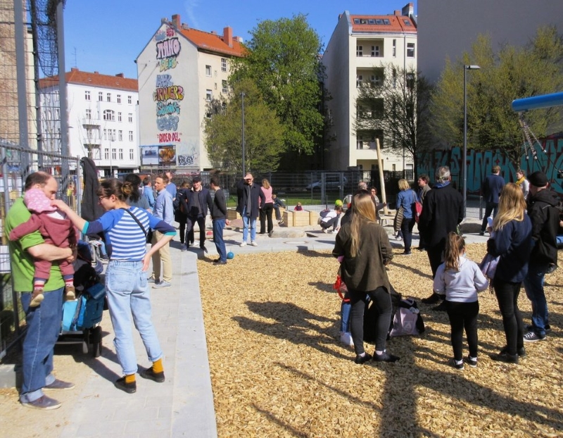 Viele Kinder und Eltern des Quartiers kamen zur Eröffnung des Spielplatzes. (Bild: Jens Sethmann)