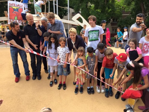 Am 15. Juli 2017 eröffneten der Bezirksstadtrat für Schule Jan-Christopher Rämer, der Bezirksstadtrat für Stadtentwicklung Jochen Biedermann und Bezirksbürgermeisterin Dr. Franziska Giffey und Quartiersmanager Ulrich Lautenschläger offiziell den Spielplatz in der ehemaligen Kiesgrube. Die Neuköllner Kinder, deren Ideen in die Planung miteinflossen, können sich nun an solch originellen Entwürfen wie ein Walfischskelett-Klettergerüst, Wollnashorn-Wackelzahn oder einem Mammutkiefer-Balancierknochen austoben.