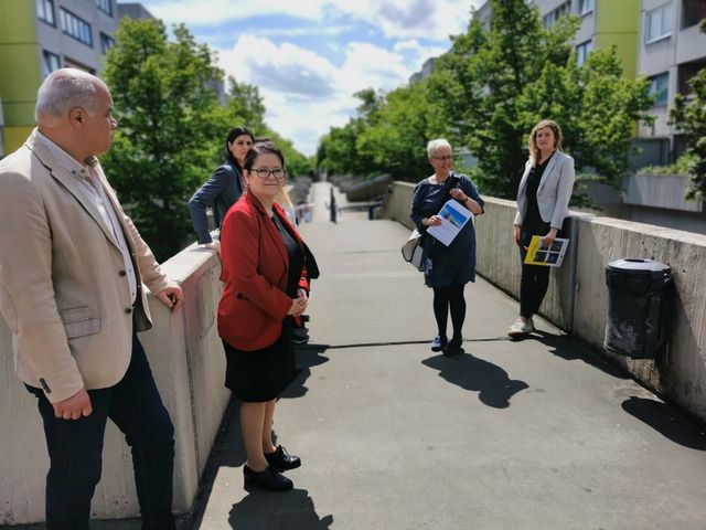 Am 24. Mai 2022 besuchte Ülker Radziwill das QM High-Deck-Siedlung/Sonnenallee Süd erstmalig in ihrer Funktion als Staatssekretärin für Mieterschutz und Quartiersentwicklung.