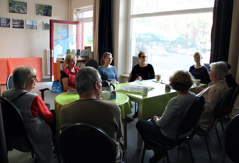 Die Stadtgärtnerinnen und Stadtgärtner des Kiezes einigten sich beim ersten Treffen darauf, dass man in den kommenden zwei Jahren in der Öffentlichkeit unter einem anderen Namen und mit einem passenden Logo auftreten will. Die erste Gartensprechstunde wurde zum Kennenlernen der Aktiven untereinander genutzt. Das Treffen diente vor allem der Bestandsaufnahme und dem Festhalten der Wünsche der Kiezgärtnerinnen und Kiezgärtner.