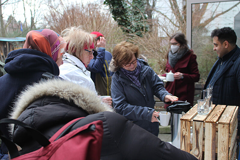 Zum Abschluss konnten sich alle bei Kaffee und Tee im Garten des Kieztreff aufwärmen. (Bild: QM Thermometersiedlung)