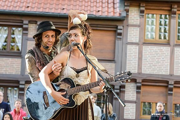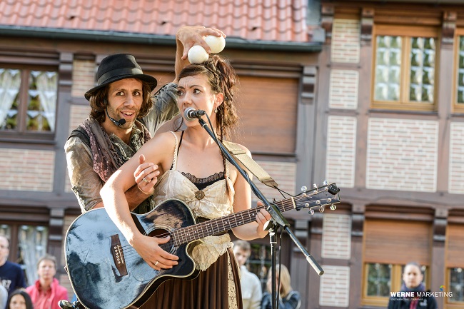 Das Künstlerduo Felice & Cortes Young begeistert sein Publikum mit einem Mix aus Musik mit Artistik. Bild: W. Behnke