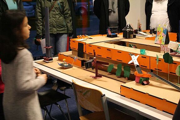 Was würden Kinder aus dem orangefarbenen Schulbau des Diesterweg-Gymnasiums zwischen Putbusser Straße und Swinemünder Straße machen? Silke Riechert vom Club der internationalen Raumforscher ging mit Schülerinnen und Schülern dieser Frage in einer Umbauwerkstatt nach. Die Studentin Mai Tran hatte für die Kinder ein Modell der ehemaligen Schule im Maßstab 1:50 gebaut. So konnten die Schülerinnen und Schüler der Vineta-Grundschule ihre Ideen gleich am Miniatur-Modell verwirklichen.