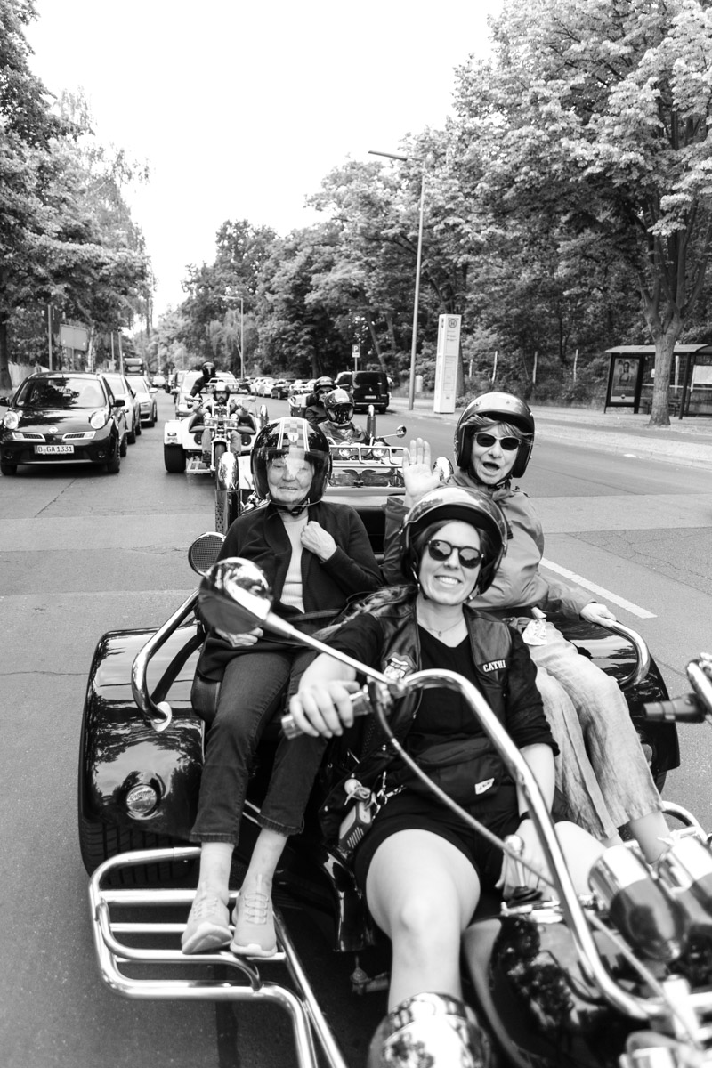 Alter ist keine Hürde für außergewöhnliche Erlebnisse, wie Gitti (78) und Karin (82) beweisen. So erlebten die Teilnehmenden von „Gitti & Gerda - Gemeinsam weniger einsam“ am 10. Juni 2023 eine spektakuläre dreirädrige Motorradtour von Kreuzberg nach Brandenburg. Die große Tour über die Spinnerbrücke sorgte aber nicht nur für Spaß, sondern setzte ein Zeichen für mehr Sichtbarkeit mobilitätseingeschränkter Älterer in der Stadt.