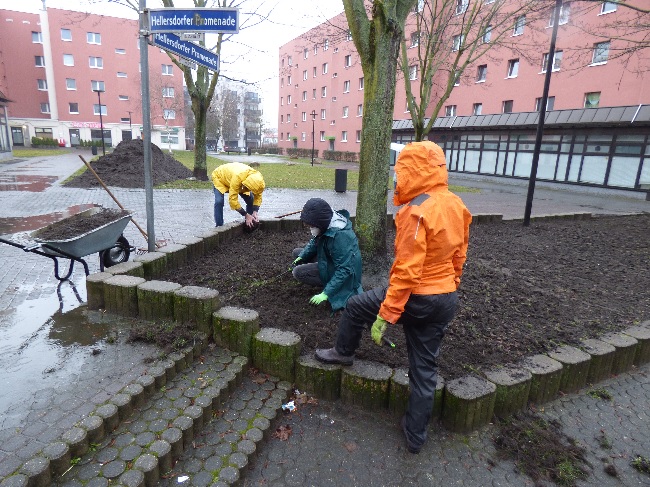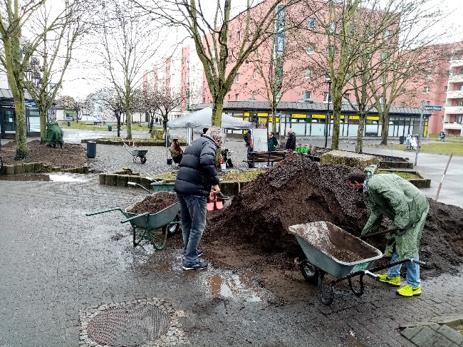 Der große Aktionstag „Beet-Patenschaften“ wurde über den Aktionsfonds gefördert und war gleichzeitig ein Bestandteil des vom Quartiersmanagement geförderten Projekts „Sicher, sauber, hell – Stammtisch Grün“.