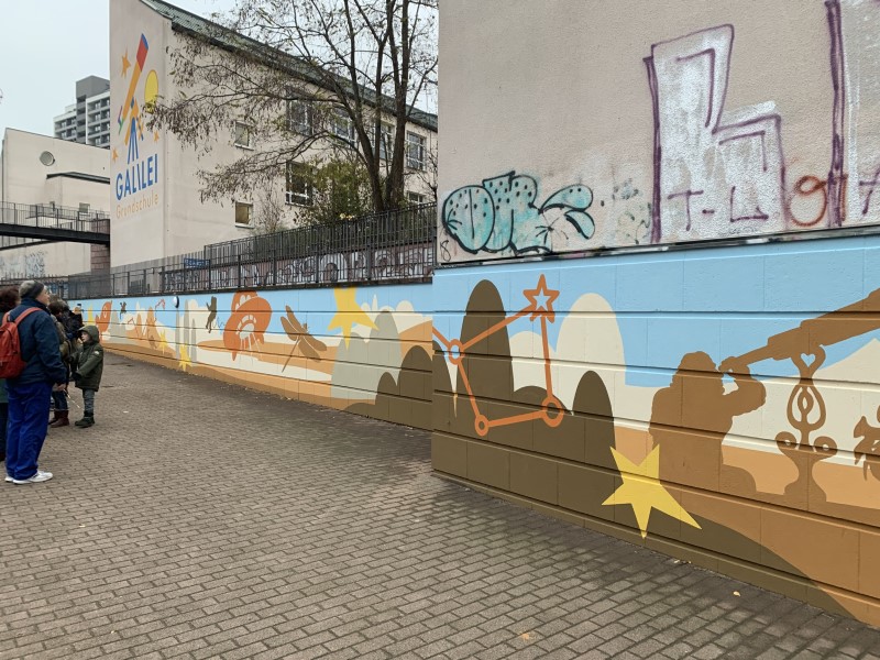 Dabei grenzt es fast an ein Wunder, dass die Wandbemalung so schnell umgesetzt wurde. Viele Ämter und Personen waren involviert, bis alle Bewilligungen erteilt wurden, erzählt Axel Gotthardt, Schulleiter der Galilei-Grundschule. So etwas funktioniere nur dann gut, wenn alle an einem Strang zögen.