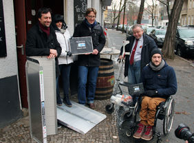 Der Stadtrat für Stadtentwicklung, Soziales und Bürgerdienste Jochen Biedermann, begrüßte das Projekt bei der feierlichen Übergabe der Rampen. Er betonte, dass es eigentlich schon lange eine Selbstverständlichkeit sein müsste, dass Erdgeschossläden mit solchen Rampen ausgestattet seien.