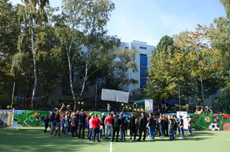 Die Klix-Arena ist mehr als ein Bolzplatz für Kinder und Jugendliche: Der nahegelegene Spielplatz, Straßensozialarbeiter und Integrationslotsen machen ihn zu einem wichtigen Ort des Austauschs und der Begegnung für die ganze Familie.