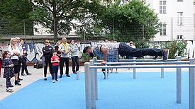 Neue Fitnessgeräte ausprobieren, Tischtennis spielen oder die „menschliche Flagge“ turnen: Der Calisthenics-Fitnessparcours auf dem Spielplatz in der Großgörschenstraße 29 ist jetzt saniert. Bei der Eröffnung am 15. Juni 2018 führten Sportlerinnen und Sportler vor, wie man die Geräte benutzt.…