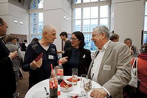 Anschließend sind Fragen an Politik und Verwaltung möglich, wobei Dr. Jochen Lang von der Senatsverwaltung für Stadtentwicklung und Umwelt durch den Nachmittag führt. Schließlich findet ein Fototermin auf der Treppe statt und im Casino des Abgeordnetenhauses klingt der Abend bei Gesprächen, einem Buffet und Musik aus.