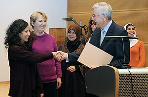 „Es ist für uns eine Ehre, diesen Preis entgegen nehmen zu können“, sagte Selda Karcay. Das Zentrum wurde 2010 mit Mitteln aus dem Förderprogramm „Sozial Stadt“ gebaut und wird seitdem von der Pfefferwerk Stadtkultur gGmbH betrieben. Es unterstützt vor allem Familien mit Migrationshintergrund im Brunnenviertel mit Beratungs- und Bildungsangeboten, Begegnungs- und Betreuungsmöglichkeiten. Tilo Siewer, der Vorsitzende des Integrationsausschusses, lobte besonders die gute Vernetzung des Projektes in der Nachbarschaft. Diese wurde auch bei der Preisverleihung sichtbar: Selda Karacay wurde zur Preisverleihung von einigen Kiezmüttern, dem Quartiersmanagement und einer Reihe engagierter Nachbarn aus dem Brunnenviertel begleitet.