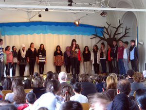 Die Stimmung in der Aula der Grundschule war ausgelassen – die Jung-Darsteller aus der Wedding Grundschule und der Herbert-Hoover Sekundarschule tanzten, musizierten und führten ein Theaterstück auf.